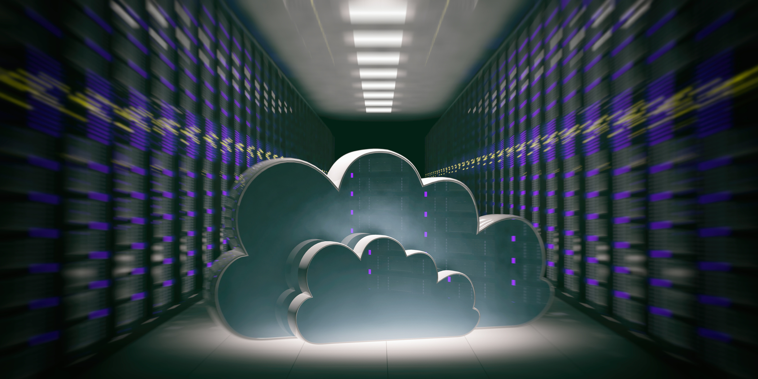 Data center – computer room and cloud. 3d illustration